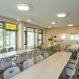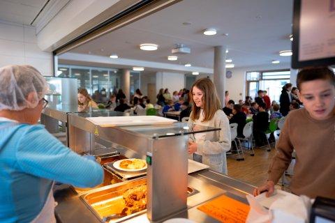 Jedes Schülermenü kostet 4,20 EUR und besteht aus einem Tagesessen, einem Salat und einem Dessert.